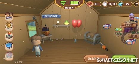 Party Game – Play through shark island with alot of events and choose your path to reach the top of the mountain first to get the treasure chest (solo or with friends).