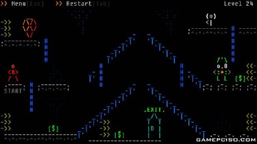 Proto Raider is a single screen auto-running puzzle platformer covered in ASCII beauty.