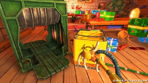 It is your duty, as an employee of Polar Sanitation Inc, to clean up the grizzly aftermath of Santa’s bloody rampage. Elves, reindeer and ruined masonry from Santa’s brief breakdown are all strewn across his famous workshop.